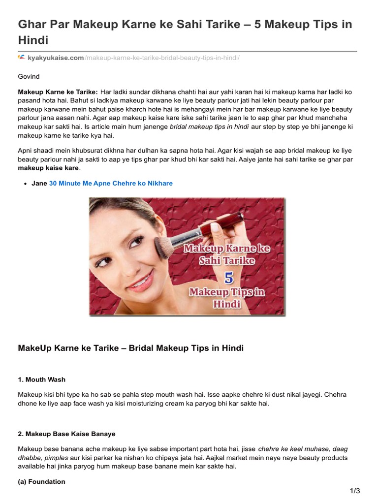 Ghar Par Makeup Karne Ke Sahi Tarike 5 Makeup Tips In Hindi Pdf Fashion Cosmetics